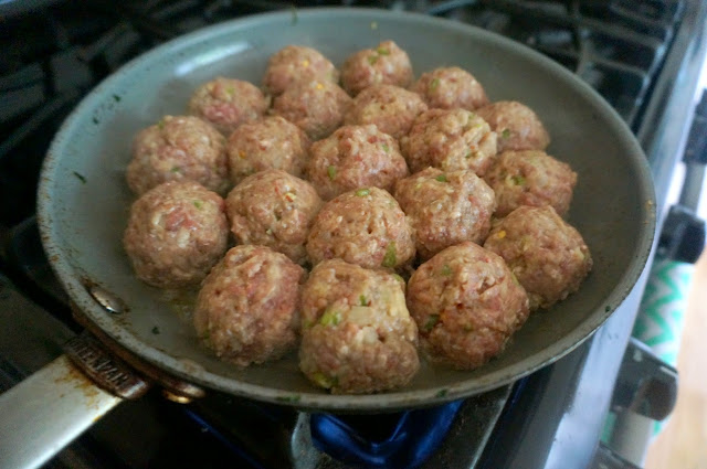 The rice is so delicious and flavorful and so much more fun than regular, bland and plain rice and it looks really pretty on the plate. I love the toasty garlicky smell and the texture that the tender spinach adds. I've also got to give the meatballs an honorable mention because they were awesomely tender and delicious.