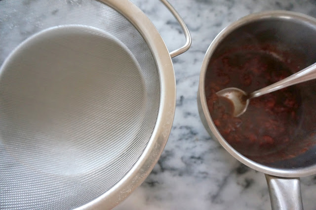 Send the sauce through a fine-mesh sieve to get rid of the seeds and pulp. Stir in a little olive oil for richness and body, and that's the sauce, done.